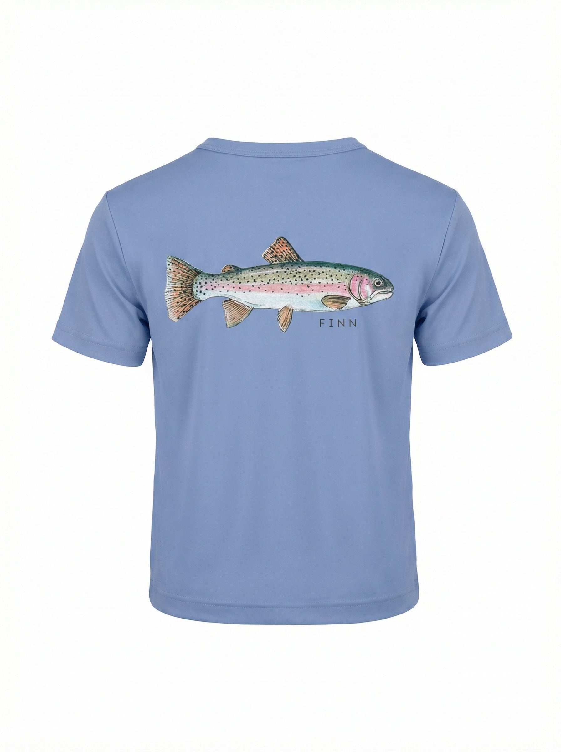 Light as air, tough on sun. The Tidal Tech Short Sleeve is a performance sun shirt with UPF 50 protection and a soft, barely-there feel. Featuring a watercolor rainbow trout graphic on the back, it’s made for boys who'd rather be knee-deep in a creek than stuck inside. Fast-drying, breathable, and built to keep up from first cast to last light.