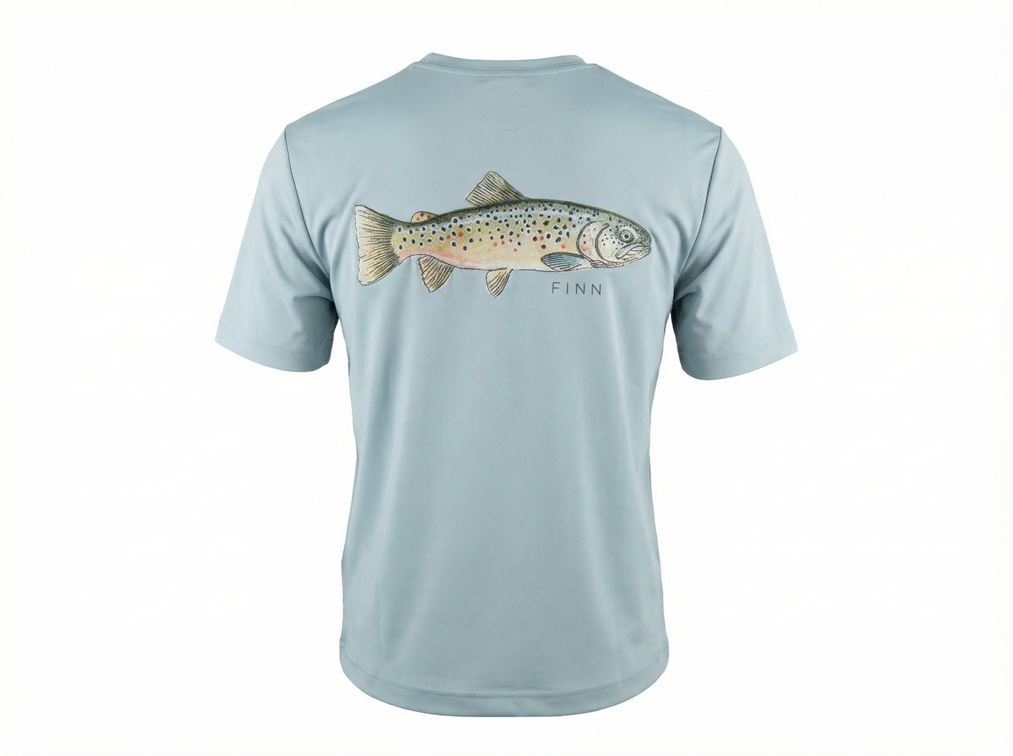 Light as air, tough on sun. The Tidal Tech is a performance sun shirt with UPF 50 protection and a soft, barely-there feel. Featuring a watercolor brown trout graphic on the back, it’s made for boys who'd rather be knee-deep in a creek than stuck inside. Fast-drying, breathable, and built to keep up from first cast to last light.